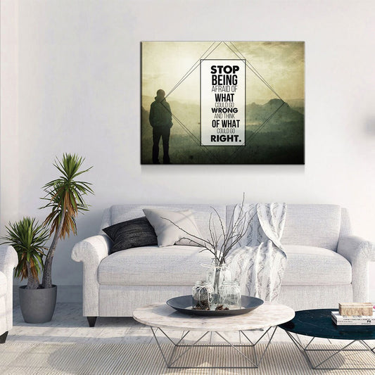 Stop Being Afraid Of What Could Go Wrong And Think Of What Could Go Right Canvas Wall Art, Motivational Decor