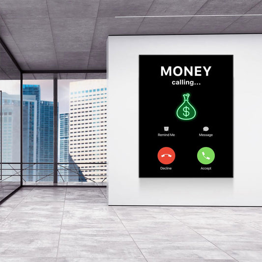 Money Calling Canvas Wall Art, Phone Screen Money Calling, Office Decor, Hustle Quote, Motivational Quote