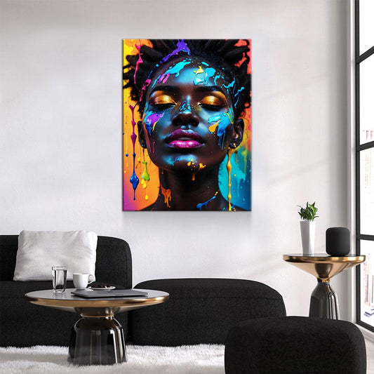 Black Girl With Paint Splatter Canvas Wall Art, African American Fashion Print, Beautiful Woman Print, Fashion Paint Makeup, Salon Decor