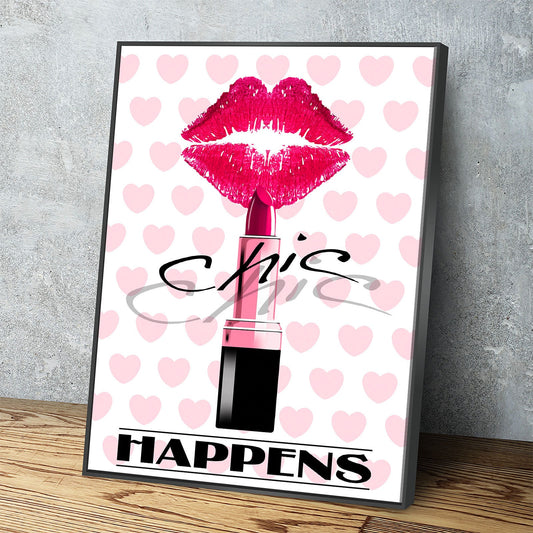 Chic Happens Canvas Wall Art, Beauty Salon Decor, Beauty Parlor Decor, Girl Dorm Room Decor, Fashion Decor, Lips & Lipstick Print