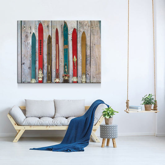 Vintage Skis Canvas Wall Art, Rustic Skis, Wooden Skis, Rustic Wall Art, Ski Gift, Retro Ski, Winter Sports, Vintage Ski Decor